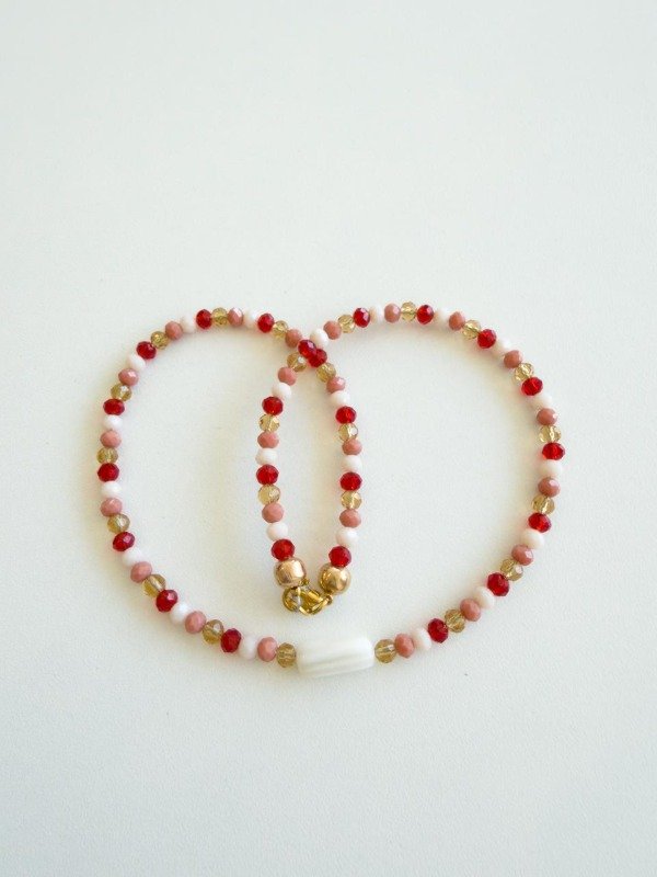 collar cristales en tonos rosados & rojo + perla alargada